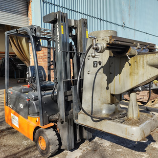 The Mill weighs a tad over 1 tone with its head attached so the first task was to remove this with block and tackle which made the task of moving the base much simpler as it removed about 400kg and significantly reduced the centre of gravity.